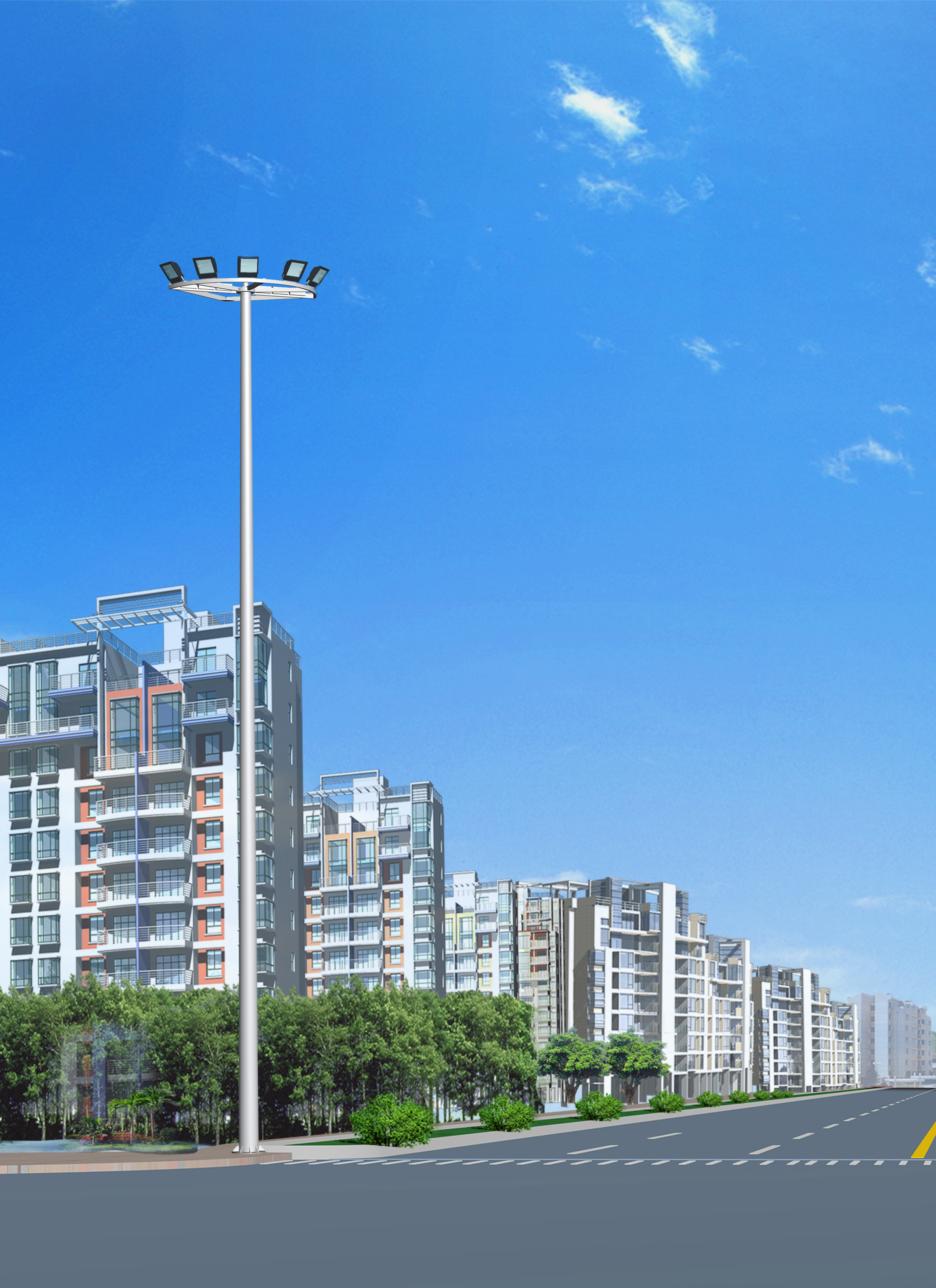 高杆结构:通常指灯杆高度在15米至50米之间的特种灯杆,其设计考虑了风荷载、结构稳定性、抗腐蚀性等多种工程因素。高杆设计使照明范围大幅扩展,单杆即可覆盖数千平方米的区域。